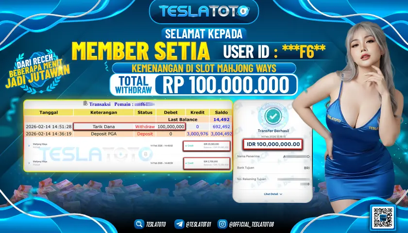SELAMAT DATANG DI TESLATOTO - SITUS PALING TERPERCAYA SAAT INI, BONUS MEMBER BARU 50%, MINIMAL DEPOSIT 5RIBU DAN MINIMAL BETTING 100 RUPIAH, BONUS ROLLINGAN 5%, BONUS CASHBACK 10%